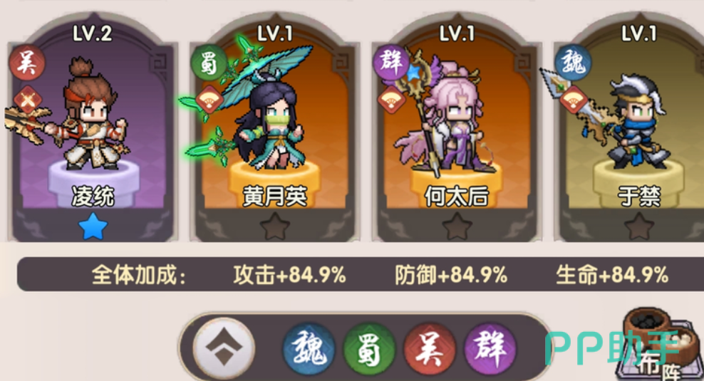 游戏初始即开放四大阵营体系,各阵营拥有独立武将池与属性成长倾向,角色定位高度差异化。玩家以“主公”身份组建六人作战编队,基础布阵遵循前排承伤、后排输出的经典结构。不同流派适配迥异战术目标:暴击流强调高频瞬发伤害,适合快速压低敌方血线;控制流依托眩晕、冰冻等硬控效果打乱对手行动节奏;而周瑜领衔的灼烧流则侧重多段持续伤害,在回合推进中实现稳定消耗。