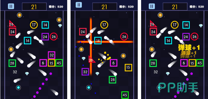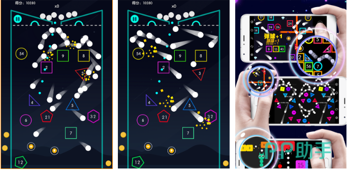 本作为弹射+接球+消除三位一体玩法设计。玩家不仅要发射弹珠,还需预判其落点并及时接住,形成连续消除链。方块标注数字代表所需击中次数,策略维度更丰富。道具系统完善,关卡结构新颖,消除爽感层层递进,品质稳定可靠。
