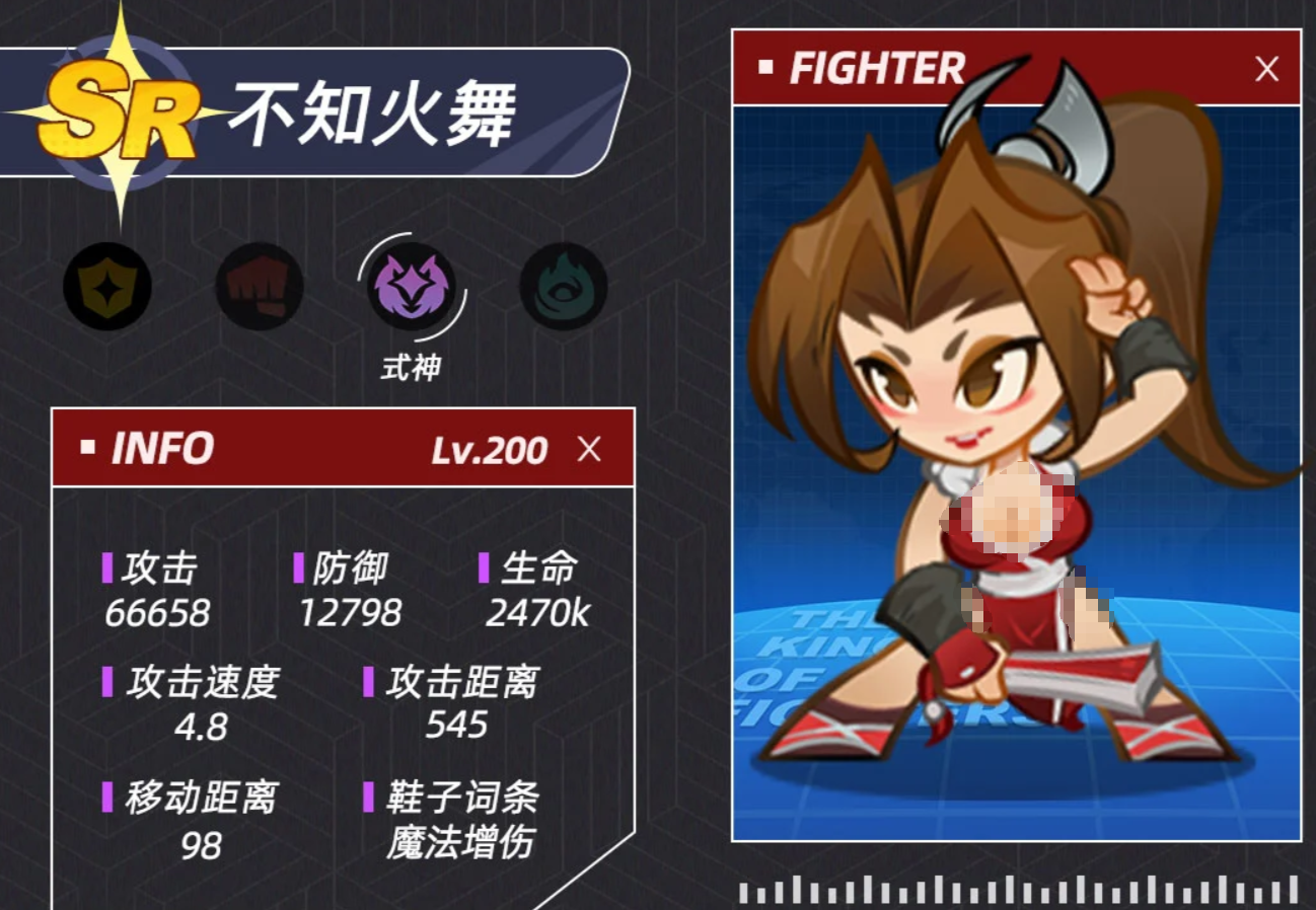 除均衡型阵容外,高爆发输出流同样具备实战价值,尤其适用于限时挑战或高难度BOSS速通场景。若选择此路线,建议将红丸作为核心组件之一——其技能可在法术强度与承伤韧性两方面同步增益全队,并显著提升单轮击杀效率。搭配草薙京可进一步强化队伍抗压能力与技能衔接流畅度;琼与不知火舞则构成强力单体斩杀组合,二者技能联动可实现精准点杀与节奏压制。玩家亦可根据实际获取角色池情况,灵活替换为机制更契合当前关卡需求的其他单位。