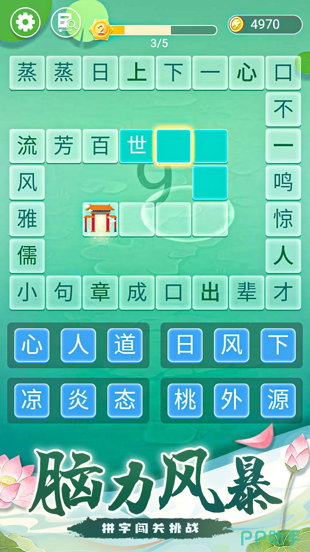本作以汉字构词规律为内核,采用模块化字块拼接机制。初始提供基础成语,玩家需从下方候选字组中选取适配字素,延伸生成新成语。关卡设计融合高频成语、易混淆字形及典故出处提示,在完成接龙目标的同时,同步强化词汇储备、语义辨析与文化常识。界面简洁无干扰,聚焦语言逻辑训练本质。