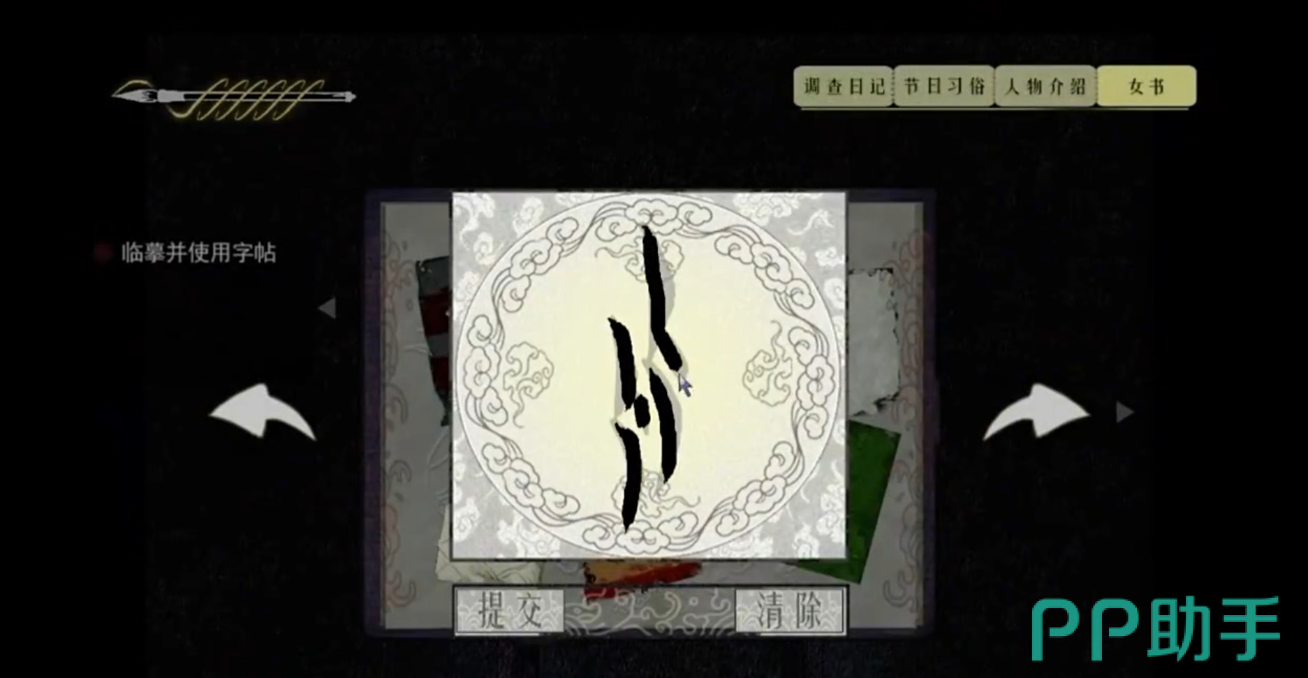 游戏主线围绕一名普通女大学生展开。她在一次返乡途中意外卷入一段尘封已久的家族往事,随之开启跨越时空的解谜旅程。操作设计极简,无复杂数值养成与重复性任务,核心体验聚焦于逻辑推演与信息整合——玩家需通过对话线索、环境细节、文本隐喻等多元信息源,逐步还原事件全貌,并在多位性格迥异的角色之间辨识立场、判断动机、揭开隐藏身份。每个角色背后都承载着与女书文化密切关联的历史切片,构成兼具文学性与考据感的叙事网络。