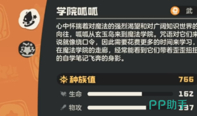 学院呱呱采用均衡型属性配置,在生命值、物理攻击与魔法攻击三项基础数值上均处于同阶精灵前列,具备应对多类型敌方阵容的适应能力。其物理防御与魔法抗性同步突出,可有效缓冲常规伤害压力,提升战场生存容错率。该精灵搭载专属被动技能“留学生”,每次主动施放技能需消耗2点能量,这一机制强制玩家建立能量管理意识,显著增强回合制对抗中的策略维度与操作精度。