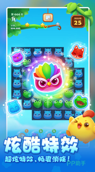 采用清新明快的视觉风格,角色设计以圆润可爱的动物形象为主,运行流畅不卡顿。核心玩法围绕三消机制展开,相同元素横向或纵向连成三枚及以上即可触发消除,连消与特效反馈细腻。关卡总量超千关,内容持续迭代,每周定期更新全新主题章节。