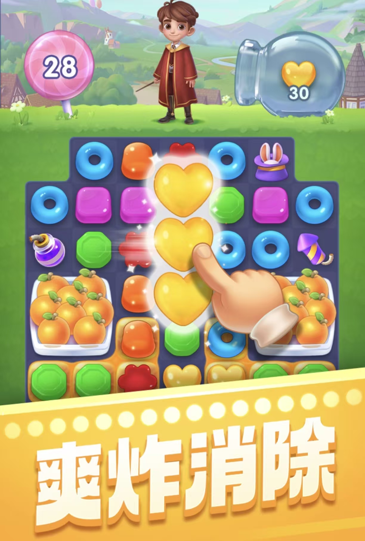 融合模拟经营与三消玩法的复合型手游。玩家化身甜品店主,通过颜色匹配消除制作棉花糖、冰淇淋等商品,响应顾客订单并升级店铺设施。关卡中引入动态障碍、连锁反应、能量槽等机制,每关元素组合逻辑各异,强调空间思维与资源管理能力。通关可解锁家具、橱窗装饰与角色皮肤,构建专属甜蜜商业世界。