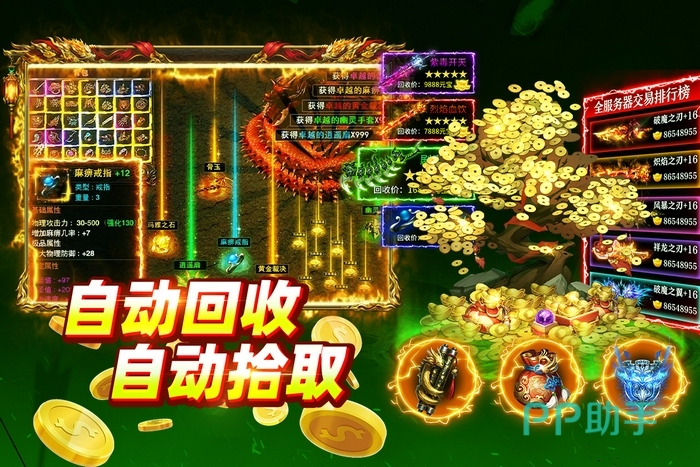装备系统坚持纯掉落导向:全地图开放掉落权限,低等级小怪亦存在概率爆出顶级神装,大幅降低平民玩家成长门槛。辅助功能完善,支持全自动挂机刷图、智能装备回收、离线元宝产出等机制,确保长线活跃度与资源积累效率,即便非重度在线用户也能稳定获取收益。