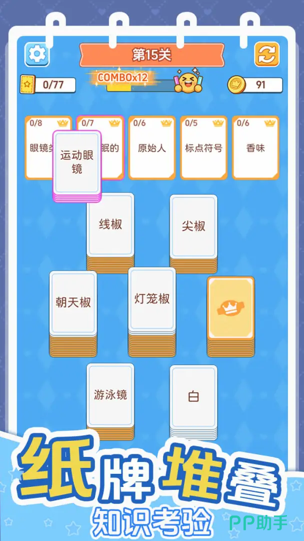 本作提供双轨解谜路径:其一为纸牌归类模式,玩家需通过拖动、腾挪与空位调度,完成同类型卡牌的系统性整理,锻炼空间推理与分类归纳能力;其二为序列接龙模式,玩家从牌库逐张翻牌,在步数限制下将匹配卡牌精准移入主题区域,强化前瞻性判断与资源统筹意识。两种机制互为补充,兼顾策略深度与操作友好性。