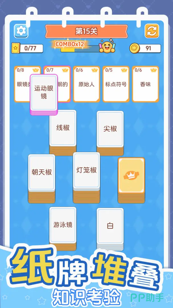 关卡体系采用渐进式难度设计,从基础识别逐步过渡至复合逻辑推演,持续激发玩家思维潜能。独创“词组收集”机制贯穿全程——玩家在解题过程中不断积累词汇组合,解锁更高级别的卡组,形成可感知的知识成长路径,显著增强长期游玩动力与目标达成感。