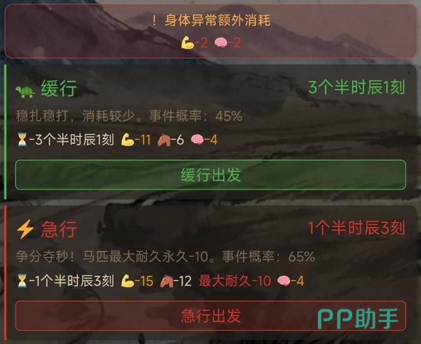游戏核心玩法围绕真实地理逻辑展开:玩家需驾驭战马穿越风雪交加的秦岭古道、湍急奔涌的黄河渡口及崎岖难行的蜀道栈桥。全程串联二十座风格迥异的驿站节点,每座驿站均构成独立决策场景,涵盖资源补给、敌情应对、路径选择等多重变量。随机生成的事件链与动态难度机制,赋予其典型的肉鸽(Roguelike)循环体验。