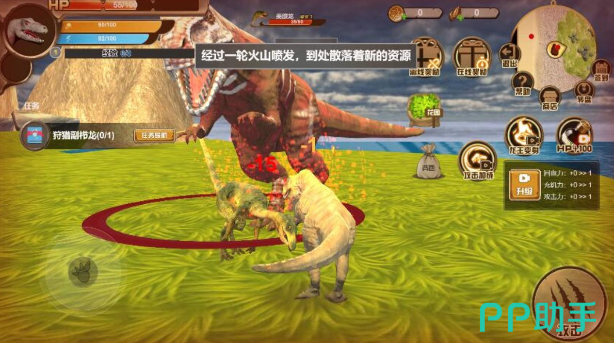 游戏采用拟真生物交互机制,玩家需直面迅猛龙、棘龙、甲龙等数十种特性各异的史前生物。战斗中可利用恐龙躯体部位作为武器进行近身攻击,同时需持续观察环境动向,防范潜伏在密林、沼泽或岩洞中的隐匿型敌对单位。每次成功击败目标均可获得进化点数,用于强化恐龙驯服等级、解锁新指令权限,并逐步整合区域内的野生种群与部落势力。