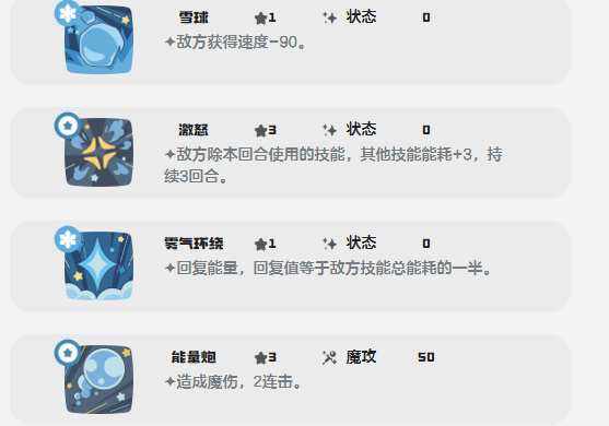 在初期看到时,那就是雪娃娃26级进化的那一瞬间,褪去稚嫩的外表,大家都会被这独特的气质所吸引。总资质并不算很顶尖,但是却拥有着最实用的冰封特性,在场上就可以把所有的技能能耗增加。看似很微弱的效果,但在实战的过程中,随时都有可能会逆袭。曾经带着他挑战首领,靠着热身运动,还有冰捆缚的联动,就能让敌方的首领没有办法去释放技能,这种成就感真的无法忘怀。