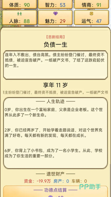 游戏另一个大的特点就是叙事和结局的多样性,人生没有标准答案,人间百十载也是如此。游戏的重复可玩性依靠人生路径的多样性,不同的初始条件、过程中的选择、随机事件的组合,就会导致截然不同的生涯故事和最终的人生结局。每一次重新开始都是一个新的人生旅途,玩家可以尝试不同的活法,去探索各种各样的人生终局,感受百味人生。