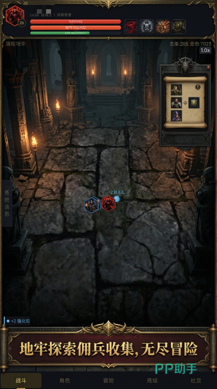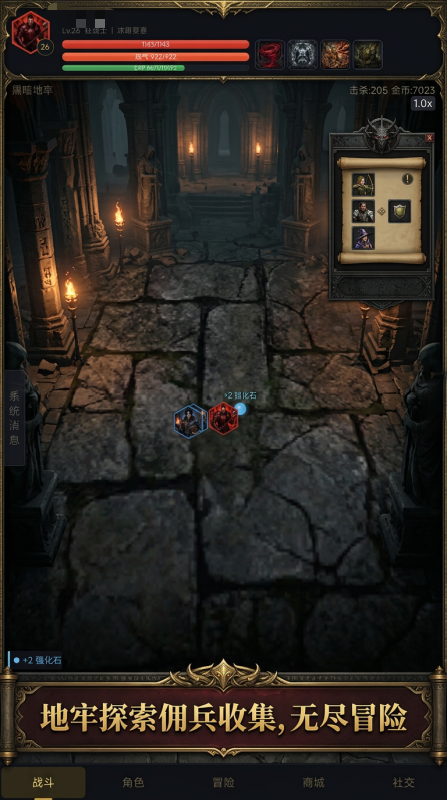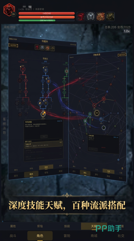 丰富的角色选择和装备系统,狂战士,暗影法师,猎魔者是三大可选的初始职业,还能招募上百种佣兵,组成编队出战,拥有90个技能节点,40多个天赋,可自行构筑自由的流派玩法。