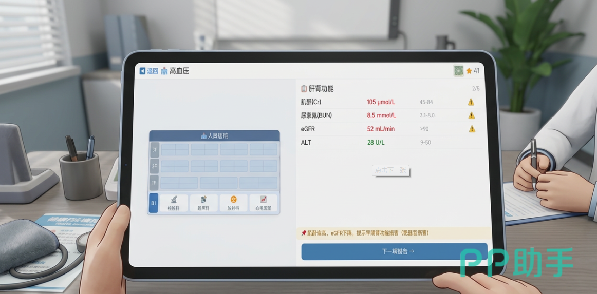 游戏中最吸引人的一点就是报告解读。每次做完诊断之后,玩家就要对检查单和报告加以解读,这既使玩家熟悉专业的医学术语,又让玩家感受到日常体检报告里看似复杂的数据背后隐藏着的意义。不断积累经验会使玩家对医学领域有更深的认识,在朋友和家人面前也可以成为他们的私人医生,解答他们的一些健康问题。