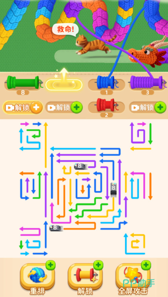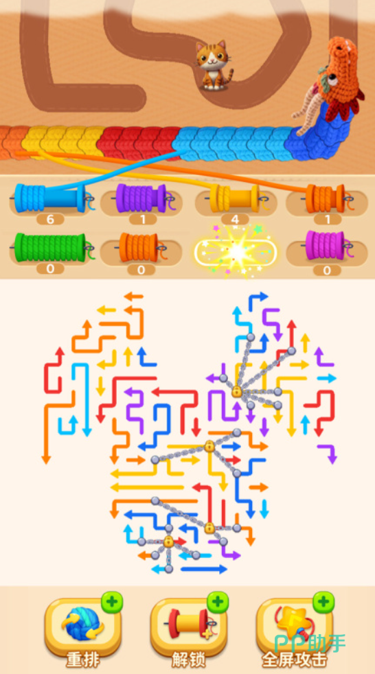 在《箭头超解压》里,玩法的主要部分就是颜色弹药的收集和发射。不同颜色的箭头代表不同的弹药种类,玩家要依靠解谜拿到相应的弹药,按照巨龙的行踪来精确地对其发动攻击。棋盘并不是静止的,它是随着玩家的操作而变化的,蛇阵错综复杂地和巨龙的逼近相互缠绕,每次滑动箭头都有一定的策略性。必须考虑怎样迅速得到需要的弹药,还要保证弹药能准确击中巨龙,从而逐渐削弱它的力量。
