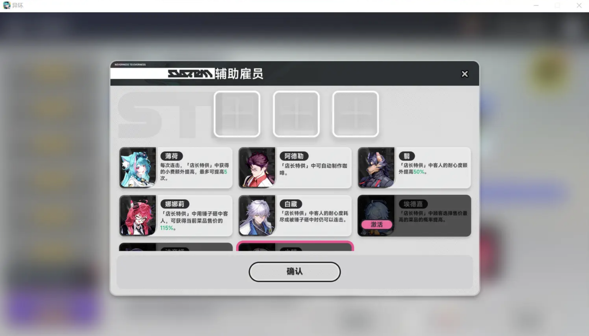 那么建议玩家所搭配的自动化阵容角色可以有:白藏和娜娜莉以及薄荷和法蒂亚,如果玩家想要追逐容错率比较高的效果,可以选择使用阿德勒和翳以及小吱,成为金融的辅助备选角色,想要实现自动化的重要前提条件,是需要白藏这个角色必须提升只三级或以上的都市技能,这一技能提供的主要属性作用,是。即便顾客等候的耐心已经消耗又或者是被锤子击打,处于连续打击的情况下也可以连续的进行计算营业额。