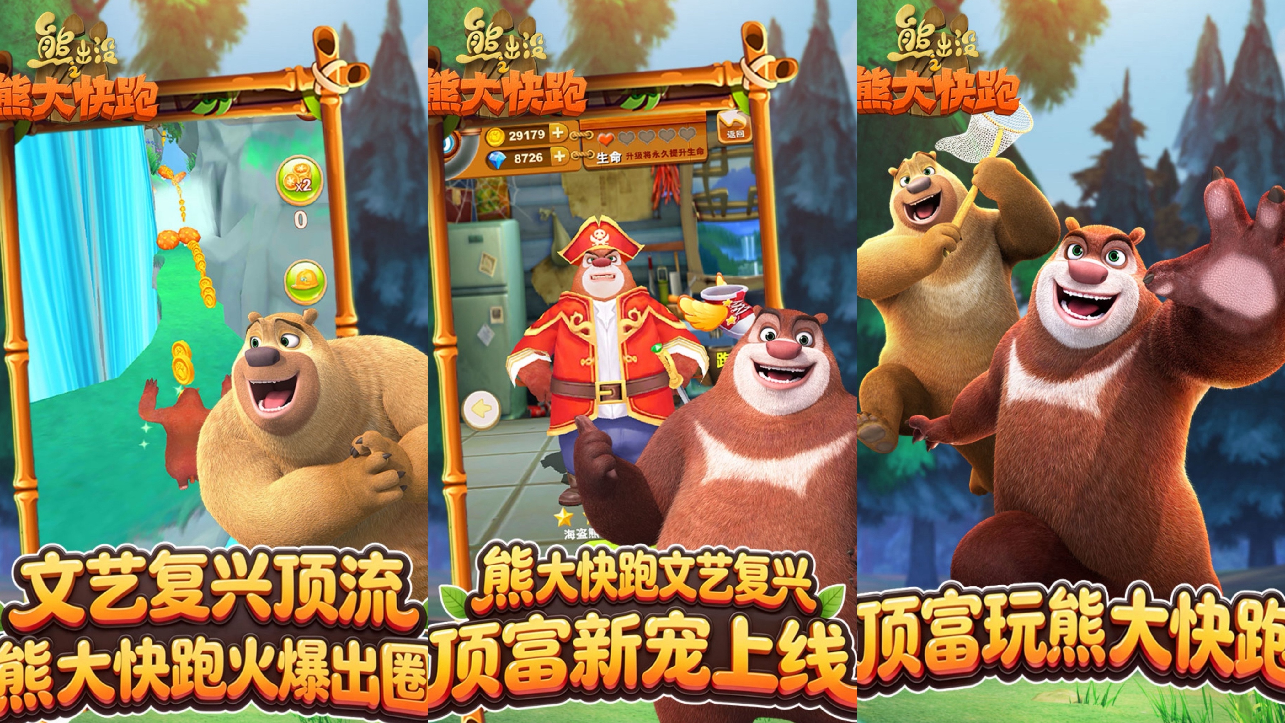 由熊出没官方授权的正版跑酷手游。在游戏里我们不仅能见到聪明的熊大,还有憨憨的熊二和凶凶的光头强,以及动漫里那些熟悉的森林场景。游戏以跑酷玩法为主,我们将控制熊大奔跑在充满障碍和金币的丛林里,去享受速度与激情的完美结合。而且不光有丛林地图,游戏还准备了城市,雪山等不同的跑酷场景,给大家更多全新有趣的跑酷体验。