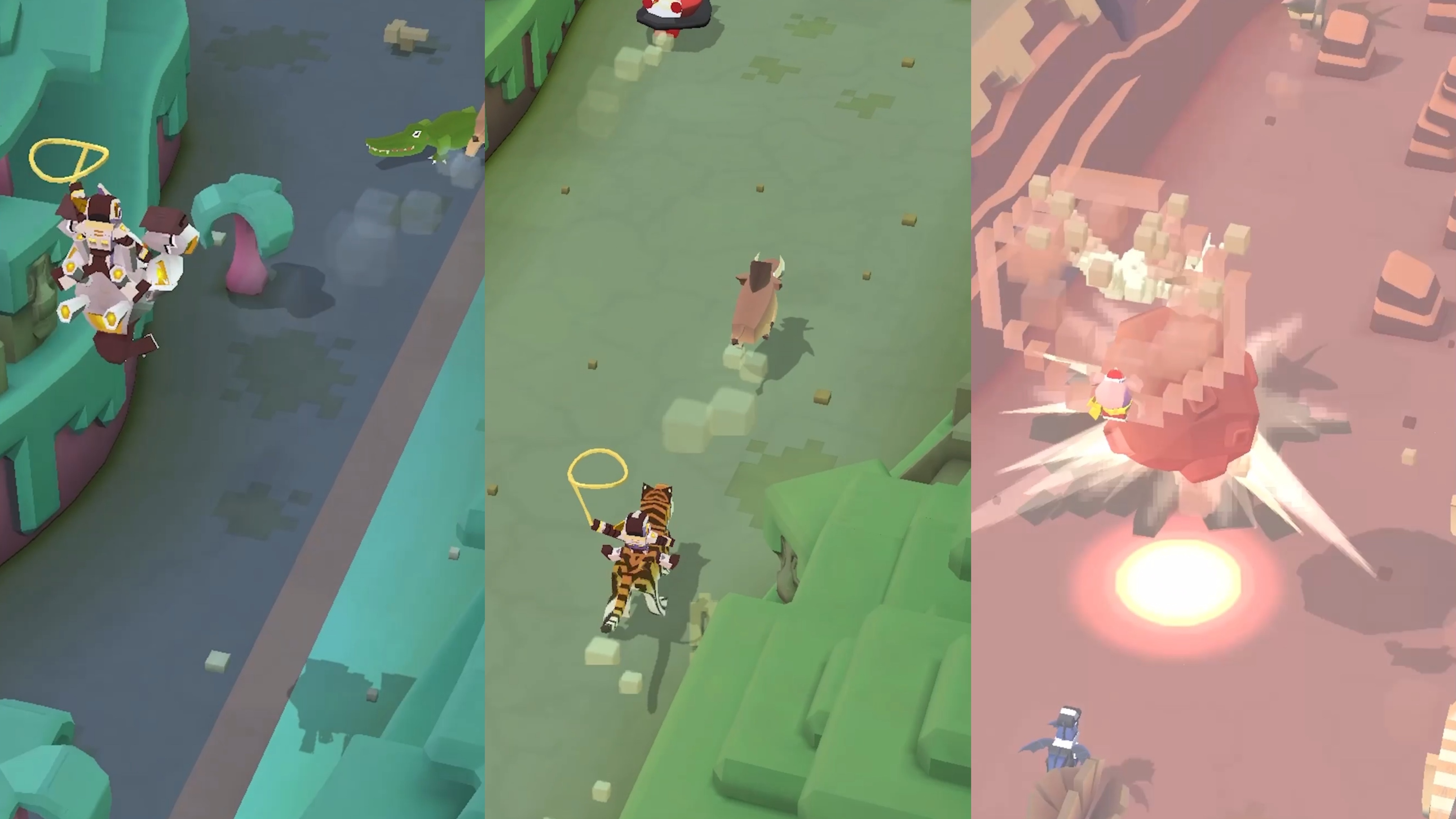 在这款游戏中,玩家们的身份是一名西部牛仔,可以骑着各种各样的动物们来一场疯狂的跑酷之旅。对比单纯的跑酷体验,这款游戏中我们不仅要躲避那些危险的障碍物,还需要用绳索捕捉更多的野生动物来扩大我们的动物园,以此来吸引更多的游客们,赚取丰厚的收益。游戏以像素风格为主,感兴趣的小伙伴不妨下载试试吧!