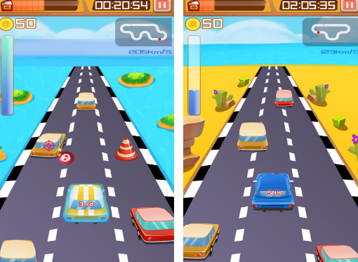 整体采用的是卡通的风格,玩家将在这里开启休闲竞速,进入了障碍丛生的赛道环境当中以后,为了可以让自己在排行榜当中位于很好的成绩,必须要驾驶着自己喜欢的坐驾,然后在各种比赛场景当中,不断的加速。操作方式比较简单,并不需要有任何的技巧,反而可以在逼真的游戏画面中,利用获得的氮气完成加速,超越对手。