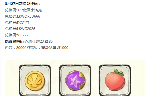 为大家分享一下2026年3月27日最新上线的兑换码。