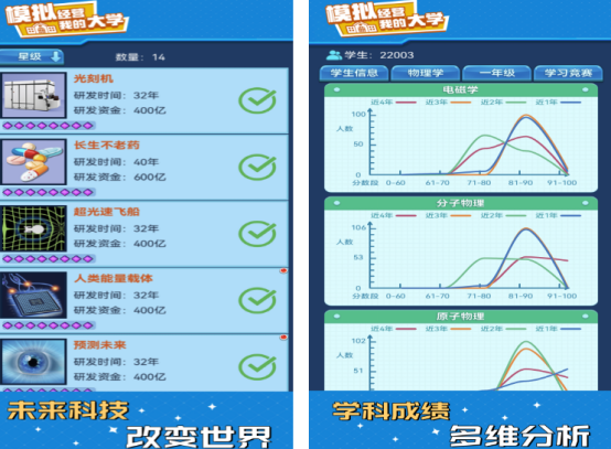 这是一款非常好玩个人开发的独立手游,高度还原了大学时的生活,你也将置身于大学的环境当中化身为校长这样的角色,真实模拟了大学生活的现状,既可以通过制定各种政策以及完成管理的方式,让每一个学生们都有着非常好的居住环境。同时还要提升他们在学习以及体育兴趣等各方面的能力,打造符合大学生们需求的环境。