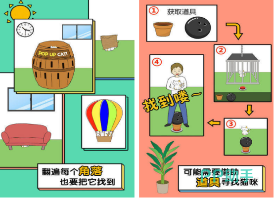 比较休闲的游戏,除了融入了小猫咪,而且还加入了捉迷藏玩法,在美多的关卡当中,玩家发挥自己的脑洞,通过将躲在房间里面的猫咪找出来的方式,来完成任务。涵盖生活当中的很多场景以及现代化的家具,无论是房间里面的沙发,或者是各个地方,都可以通过翻遍每个角落的方式将其找到,还可以借助一些道具。