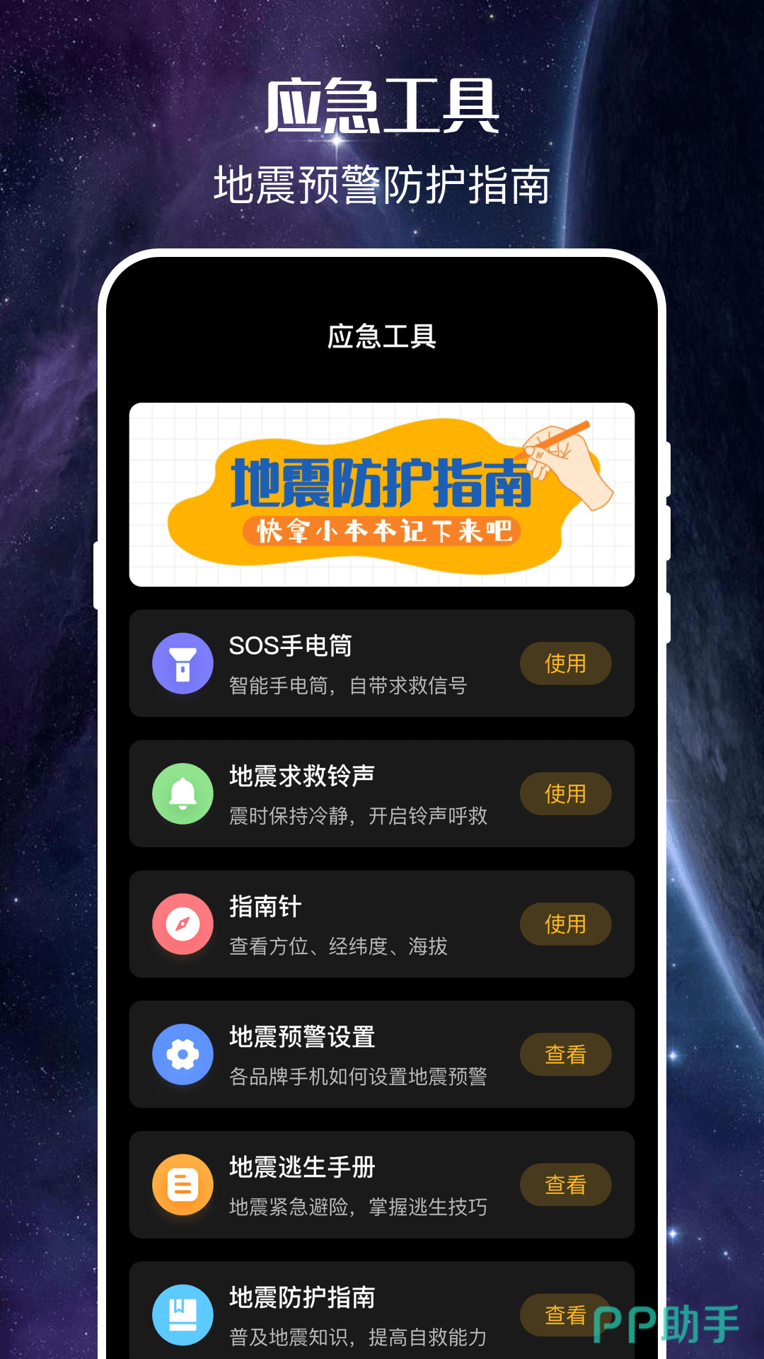 它靠电波比地震波快的原理,能在破坏性震波到达前发出秒级预警,倒计时界面很清晰明了,剩余时间一眼就能看清。最贴心的是断网断电也能用,内置的强光手电筒和高分贝求救哨,关键时刻能派上大用场。还会教大家很多自救知识哦。