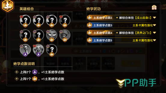 ⑤土系绝学(含土系绝学·残):共11位英雄,满阶需5点绝学值(1个完整土系英雄=1点,2个土系绝学·残=1点)