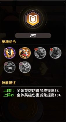 ④坦克羁绊(共6位可选英雄,满阶需2人)