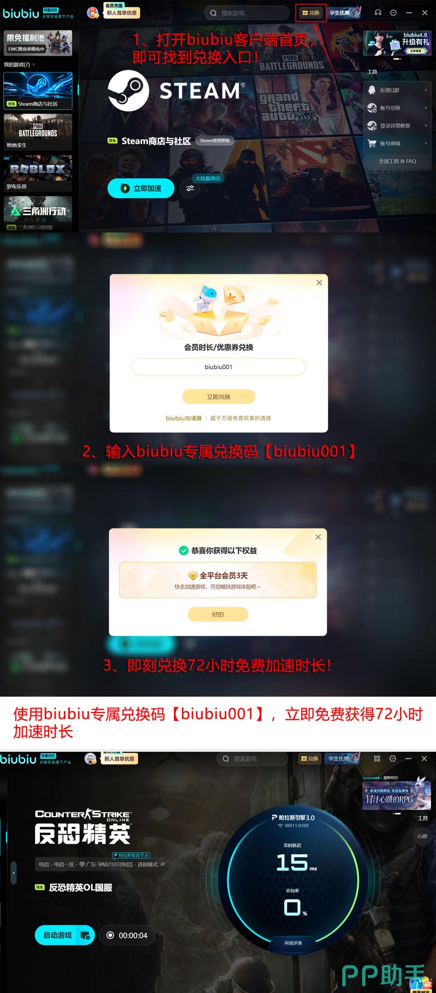 新用户专属福利现已开放:点击上方链接即可获取官方正版安装包。首次注册用户自动享有24小时免费加速时长;另可通过兑换码【biubiu001】额外领取72小时加速权益。两项福利叠加后,总计可享96小时全功能加速服务,助您零门槛畅玩CSOL。