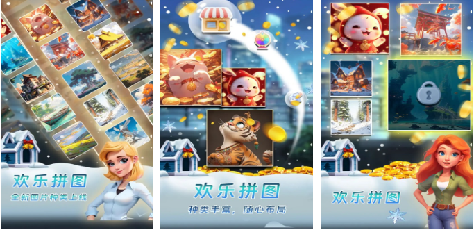 面向泛用户群体优化,千片模式默认开启智能提示开关,可自由调节提示强度(弱/中/强三级)。美术采用柔和色调与圆角UI,减少视觉压迫。图库包含萌宠、甜品、卡通场景等轻松主题,单局平均耗时控制在25分钟内,适合作为日常减压工具。支持横竖屏无缝切换,适配不同手持习惯。