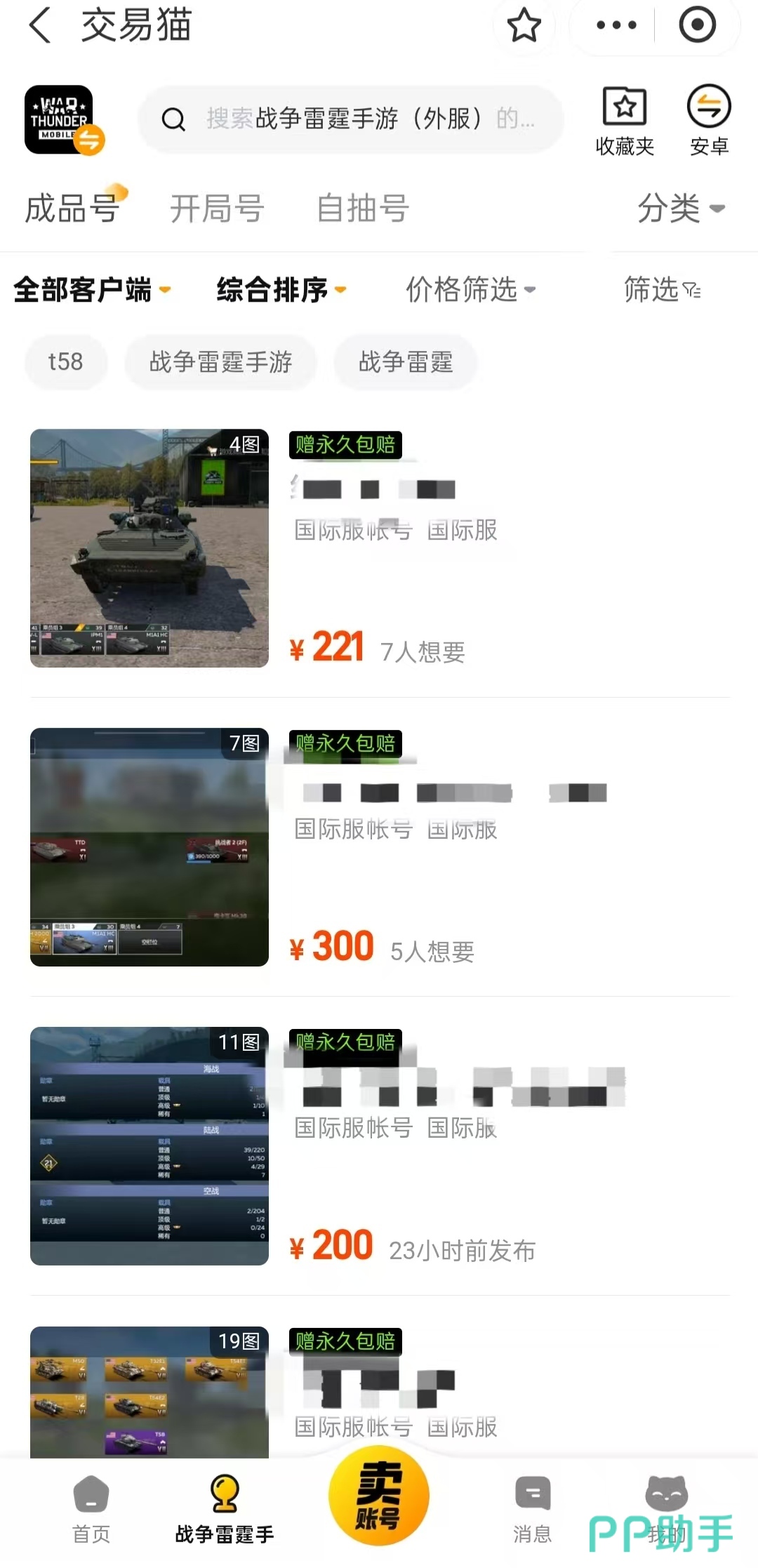 对于追求即时战斗沉浸感的玩家而言,选购经过实名认证、配置完善的成品账号,是快速进入高阶战场的有效路径。交易猫作为国内头部游戏资产交易平台,已累计服务超7000万玩家,在《战争雷霆》账号交易领域具备成熟运营经验与丰富库存资源。平台提供多种等级、战车组合及科技树进度的账号选择,价格区间覆盖广泛,且所有成交账号均享有业内独有的“永久包赔”保障服务——即在账号因非买家操作原因导致无法正常使用时,平台将无条件履行赔付义务,覆盖全部交易场景。