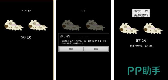 极简操作型点击互动游戏,核心玩法为精准触控屏幕上的动态小狗角色。每只小狗具备独立行为逻辑与随机移动轨迹,连续点击可积累连击分数,触发特殊表情动画与音效反馈。美术风格突出萌系低多边形特征,适配碎片化娱乐场景。