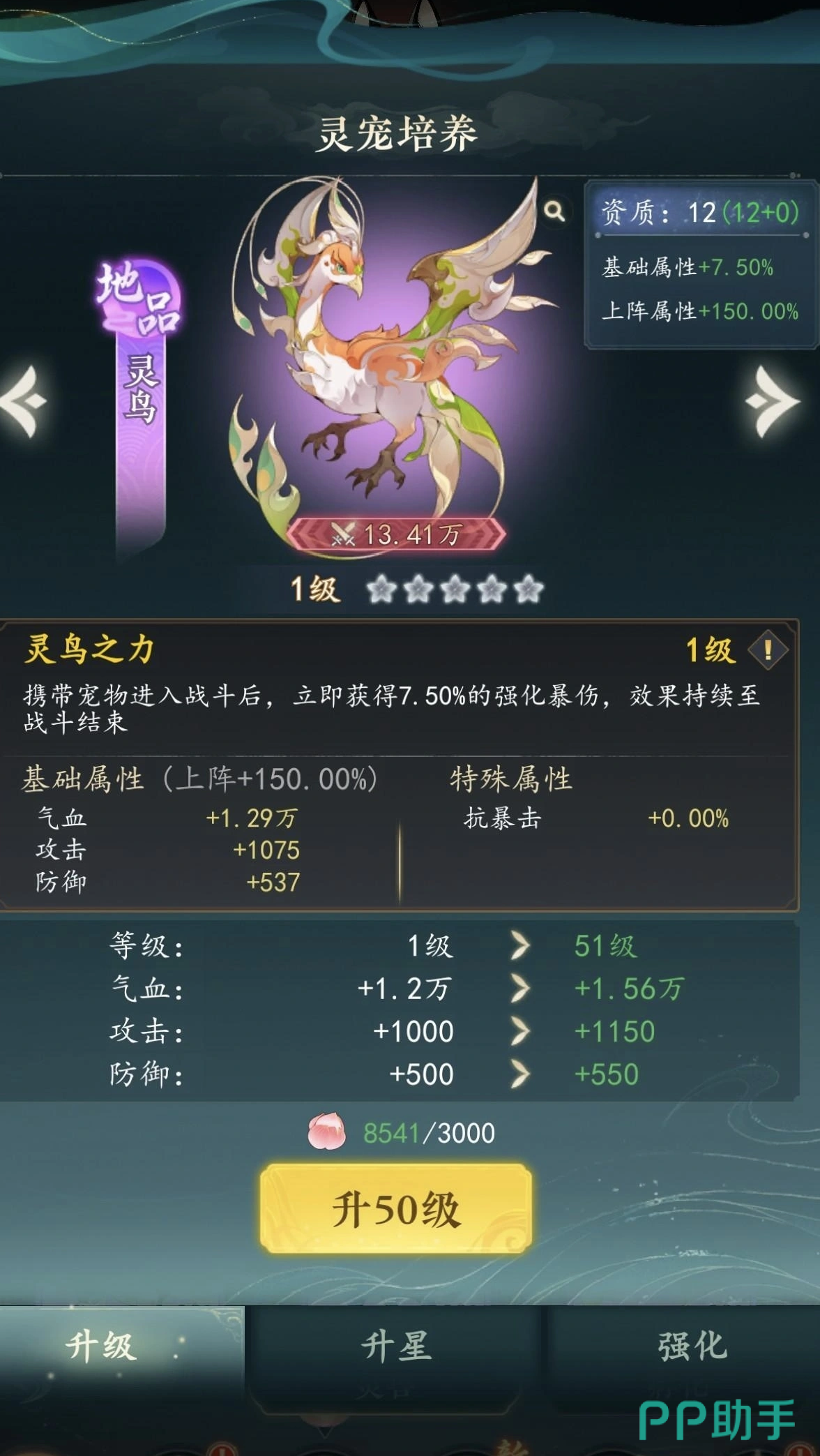 第二只推荐灵宠为灵鸟。其被动机制聚焦于暴击伤害强化,能有效放大玩家本体暴击后的输出倍率。灵鸟自身具备不俗的基础攻击属性,并可在战斗中主动参与协同普攻,形成持续压制。值得注意的是,该灵宠的效果发挥依赖玩家基础暴击率达标,因此更适配已初步成型暴击流配装的新手或中期玩家。整体培养资源消耗较低,养成周期短,泛用性强。