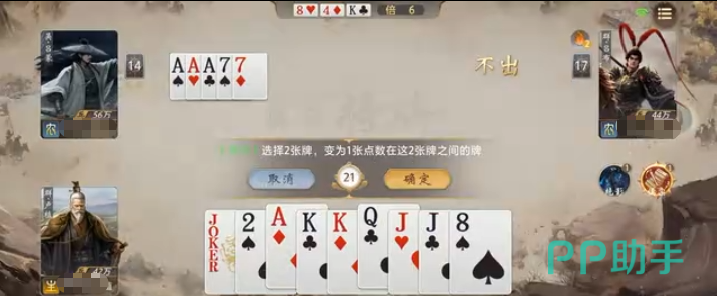 该机制表面受限较多,实则具备极强的牌型重构能力。典型应用场景如选取“A”与“Q”,即可生成“K”,配合手中已有的两张“K”,快速组成三带一组合;若手握多张孤立单牌,亦可通过多次技能调用,将其转化为顺子或连对结构,显著提升出牌效率。