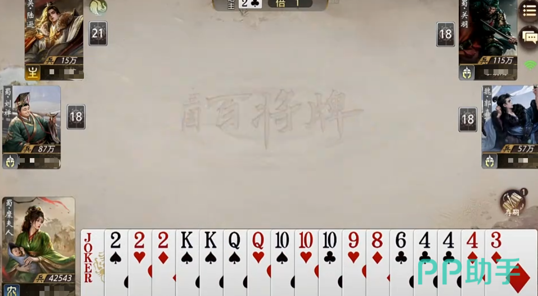 卢植的主动技能名为“儒宗”,整局游戏可释放两次。发动时需自主选定两张点数不相邻、且数值不同的手牌,系统将生成一张新牌,其点数严格介于所选两张牌之间(不含端点)。该生成牌不可参与构成炸弹牌型,例如无法通过此技能合成四张相同点数的牌。