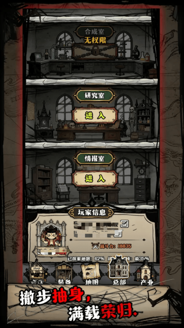 场景设计深度植根于中式民俗语境:从阴宅祠堂到纸扎铺子,从节气祭仪到符箓阵法,每一处区域均承载文化隐喻与玩法功能。研究室用于解析诡物本源,合成室支持多阶诡物升变,情报室则提供灾厄动向与随机事件线索。任务系统采用动态生成机制,配合区域专属宝物掉落与不可复现的随机奇遇,保障每次探索具备差异化体验。