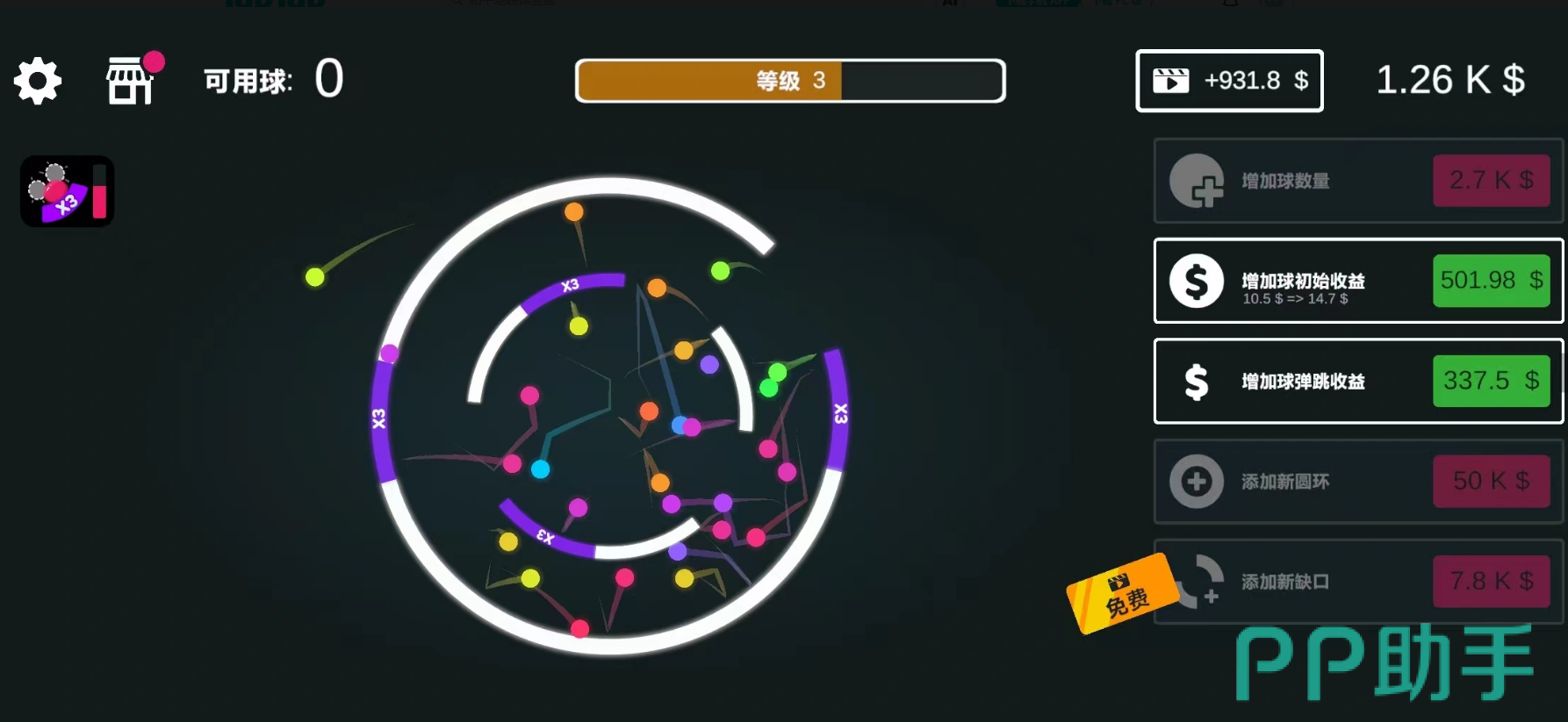 游戏中设有差异化功能砖块系统:红色砖块需连续两次击中方可消除;金色砖块被击破后将掉落多倍金币奖励;炸弹砖则可触发范围爆炸效果,一次性清除周围区域障碍。配合基础钢球、附带火焰特效的燃烧球、撞击后自动分裂的多弹头球等多样化弹球类型,显著提升策略性与随机趣味性。