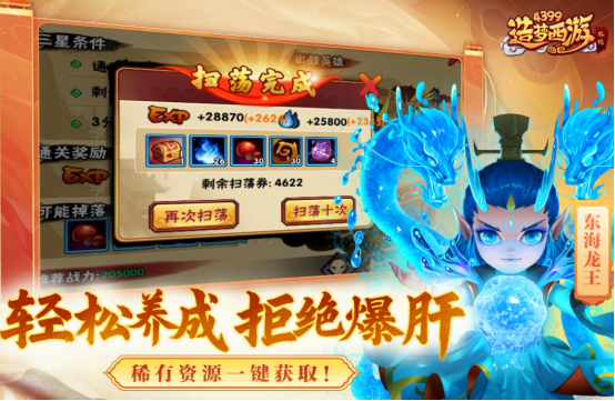 延续《造梦西游》系列世界观,融合ARPG成长体系与MOBA竞技框架。新增3v3推塔对抗与1v1单挑模式,野区设置Buff争夺点,获胜后可获得属性加成。英雄池涵盖唐僧、孙悟空、猪八戒、沙僧及小白龙等西游核心角色,其中小白龙定位为爆发型位移英雄,技能模块支持自由搭配,连招循环流畅,操作反馈强烈。