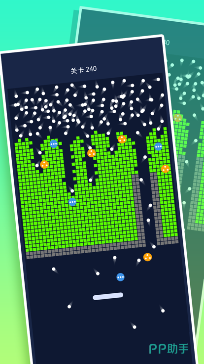 区别于传统三消机制,本作引入物理弹射逻辑:玩家发射球体撞击砖块实现消除,过程中球体可能随机分裂或再生,动态改变弹道轨迹与消除路径。每局目标明确——在最短时间内击碎指定数量砖块,强调反应速度与预判能力,重玩价值突出。