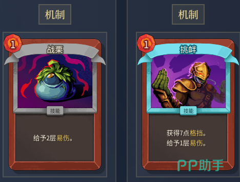 前期以稳为主,优先选择挑衅等具备易伤施加与承伤缓冲双重效果的卡牌。挑衅可一次性施加两层易伤,在保护自身的同时逐步累积层数,为中后期爆发打下基础。此阶段无需强求即时斩杀,重在每回合稳定挂易伤、维持节奏连贯性。