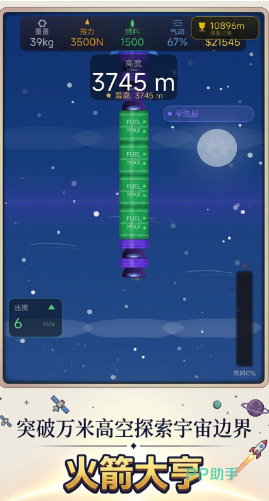你是否曾幻想过亲手打造一枚专属火箭,穿越云层,俯瞰地球表面纵横交错的经纬线?《火箭大亨》手游正为你开启这场硬核又充满乐趣的航天工程之旅。在游戏中,玩家可自由组合各类真实感十足的模块化组件——从轻质燃料舱、多级推进器,到高精度导航系统与姿态稳定装置。每一次部件选择,都会直接影响火箭的最大升限、终端速度、飞行稳定性及燃料效率,真正实现“设计即性能”。