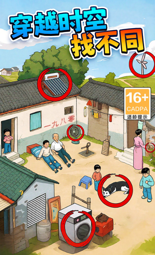 主打怀旧叙事与时空逻辑校验,场景还原上世纪多个典型生活片段,如老式街巷、单位大院、供销社柜台等。玩家需结合时代背景知识,识别画面中违和元素:例如出现在八十年代街道上的新能源汽车、九十年代教室里的智能平板等。支持自由圈选标注,强调逻辑推演与历史常识融合,锻炼批判性观察能力。