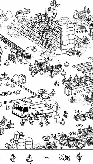 采用极简黑白手绘风格,摒弃冗余色彩干扰,突出画面结构与目标轮廓,大幅提升辨识效率。游戏内置多张原创手绘地图,每张图均设置独特隐藏逻辑——或藏于阴影褶皱,或隐于图案重复之中。动态音效与细微动画增强沉浸感,内容持续更新机制保障长期可玩性,是训练图像解构能力的理想选择。