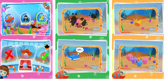 面向学龄前儿童设计的启蒙类探索游戏,构建拟真海洋生态环境,涵盖浅海珊瑚礁、海藻森林、深渊热泉等六大生物栖息带。登场生物逾八十种,包含小丑鱼、章鱼、抹香鲸及发光水母等真实物种,形态建模与行为逻辑符合基础生物学特征。操作仅需单指滑动与点击,无文字提示与复杂界面,适配3-6岁儿童认知发展水平。