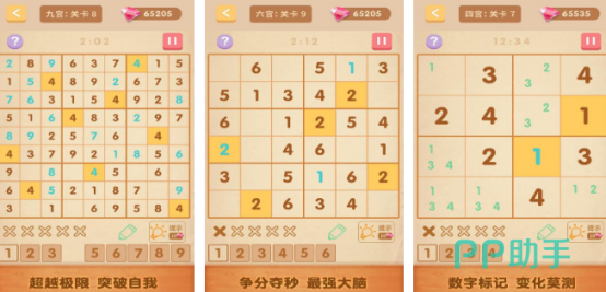 在传统数独规则基础上实现多维拓展,除常规四宫格、六宫格外,新增高阶24宫格挑战模式,覆盖从零基础入门到高阶策略进阶的完整成长路径。题型难度梯度科学,支持提示、回溯与错题标记功能,兼顾学习效率与解题沉浸感,满足不同水平玩家对逻辑训练的差异化需求。