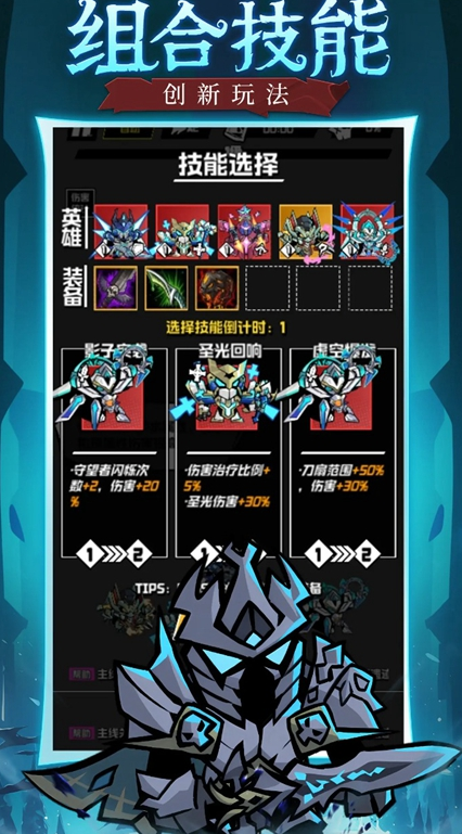 以英雄为核心防御单元,每位角色拥有独立属性模型与差异化技能释放逻辑。玩家需根据地形与敌波特性,为其指定防守区域并完成站位编排。前排优先配置高耐久型英雄承担伤害,后排输出位则侧重AOE或持续压制能力。所有英雄均可同时登场,且支持自由合成强化,成长路径清晰直观,阵容组合灵活度极高。