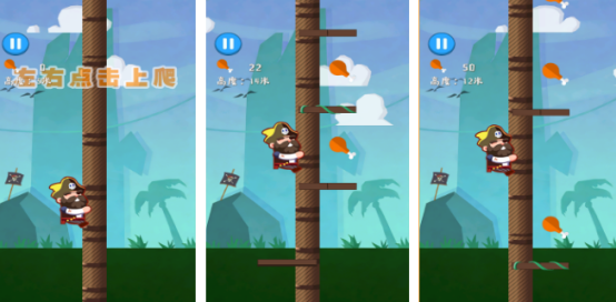 聚焦竖版攀爬式闯关体验,玩家操控萌系角色沿垂直柱体向上跃进。基础操作仅需左右点击屏幕实现方向切换,过程中需动态应对下落鸡腿(可收集)、凸出木板(需规避)等随机障碍。界面实时显示已获鸡腿数量与当前攀爬高度,强化成长反馈。
