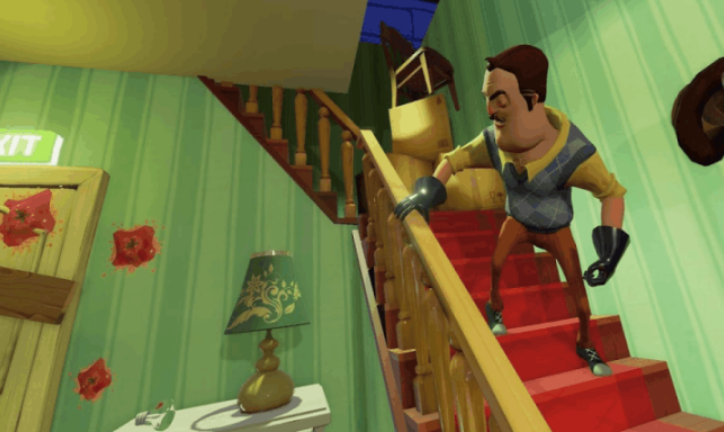 系列正统续作,强化写实主义表现手法。采用PBR材质渲染与全局光照系统,阴暗角落具备真实光线衰减效果。邻居行为模型升级为四级威胁响应(警觉→搜索→围堵→终极追击),环境互动扩展至可破坏墙体、临时掩体搭建、电路短路等维度。地图结构采用非线性迷宫设计,鼓励玩家建立个人探索路径记忆。