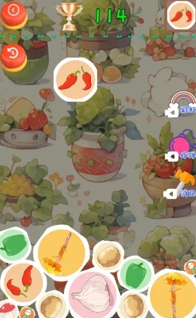 基于下落式合成机制的创意休闲游戏。以蔬菜水果为合成元素,通过相邻匹配触发连锁反应。背景动画生动自然,合成反馈爽快清晰,目标明确、节奏可控,既满足短时放松需求,又具备一定成长目标驱动,耐玩性突出。
