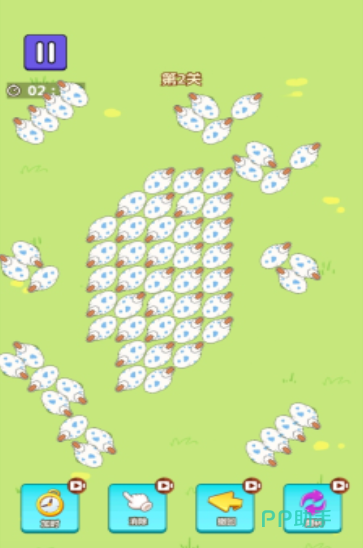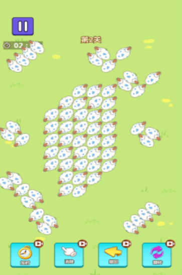 本作采用策略引导式玩法,画面中密集分布多只朝向不一的鸭子。玩家需逐层规划移动路径——当前方被其他鸭子阻挡时,必须先调整前排单位朝向或位置,才能推动整体队列前进。每关设有倒计时机制,提升决策效率要求,有助于锻炼空间逻辑推演与动态路径规划能力。